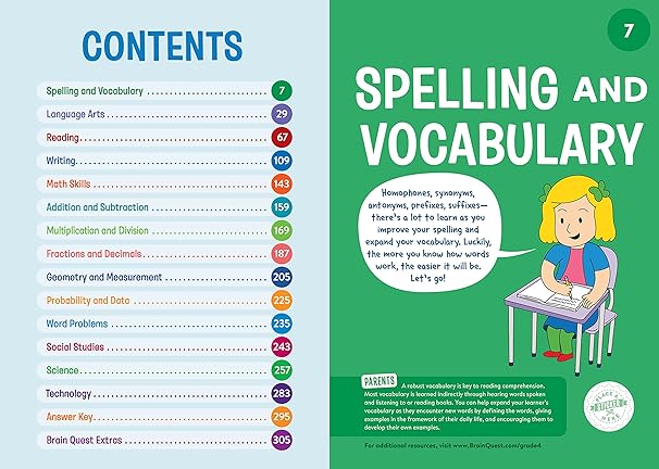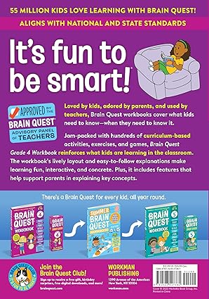 Loved by kids, teacher approved, and trusted by parents, Brain Quest Grade 4 Workbook reviews and reinforces what children are learning in the classroom in an instantly engaging, entertaining way. Each page is jam packed with fun activities, practice exercises, and games covering vocabulary, language arts, math word problems, multiplication and division, fractions and decimals, geometry and measurement social studies, science, and much more.