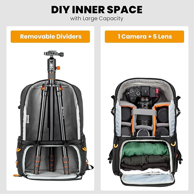 - 【OUTDOOR PHOTOGRAPHY FRIENDLY】 Made of water repellency and high strength tear-resistance nylon, this large camera bag is sturdy and durable, attached an extra rain cover for this outdoor photography backpack keeps rain and dust out, makes it one of a kind storm-proof backpack that can take whatever weather throws at it.