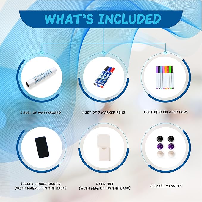 - Easy writing and erasing: This magnetic whiteboard paper for wall writes smoothly and erases easily without leaving any ghosting, even after 60 days.The included marker is water-based and can be erased with a paper towel or board eraser or a rag.