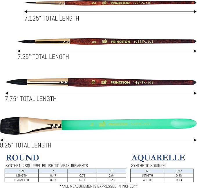 - Perfect for Watercolor Artists – Considered among the best watercolor brushes, this set is designed for watercolor techniques. The watercolor brushes set includes a 3/4" aquarelle brush with a unique sea glass handle and three round watercolor brushes in sizes 2, 6, and 10. Perfect for everything from bold washes to intricate details, this set is an essential addition for any watercolor artist