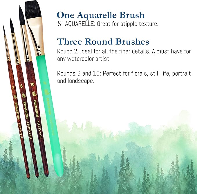 Princeton Neptune 4750 Series 4pc Watercolor Brush Set - Watercolor Brushes