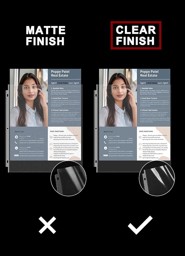 - Document Protection Enhanced: Each clear pocket sleeves includes 100 sheet protector units measuring 9.25 x 11.25 inches, specifically designed to comfortably hold 8.5 x 11 inch letter-size paper. These binder sheet protectors are capable of accommodating up to 2 sheets per pocket. With clear binder sheet protectors, visibility and access to your documents. Additionally, our sheet protectors heavy duty design ensures durability. The versatile binder sleeves fit seamlessly into standard 3-ring binders.