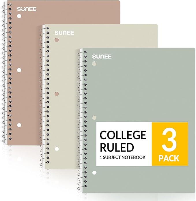 - 3-PACK: Ideal for color-coding by subject or child, this 3-pack of 1 Subject Notebooks comes in elegant shades of Neutral- Gray-Green, Beige, and Red, or the pastel pack of Pink, Blue, and Green with 70 college ruled pages per notebook.
