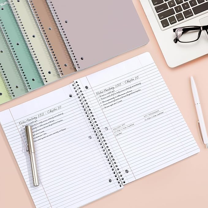 - COLLEGE RULED: Each 8" x 10-1/2" notebook features 70 double-sided sheets with red margin lines and is 3-hole punched, allowing for easy transfer to your binder.
